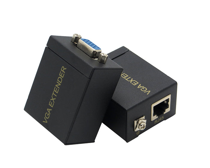 The VCOM VGA Extender comprise of a Transmitter and Receiver unit allowing a VGA signal to be extended over Category 5e or 6 cable up to 100m away. The easy installation plug and play device supports 350Mhz bandwidth and will support resolutions of 1920 x 1200 at 60Hz. This is an ideal product to be utilized in the office, educational or entertainment industries.